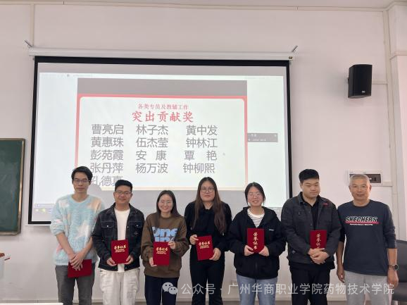 最后对本学期在教学竞赛以及教辅工作表现优异的老师进行表彰。