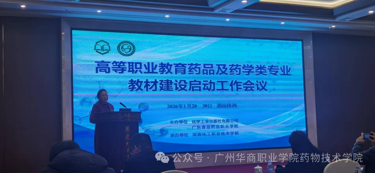 为深入贯彻落实国家职业教育改革精神,推动药品及药学类专业教材建设高质量发展,1月28日至30日,由化学工业出版社主办的“高等职业教育药品及药学类专业教材建设启动工作会议”在湖南长沙召开。我院教师邱志兵、伍杰莹参加了此次会议。