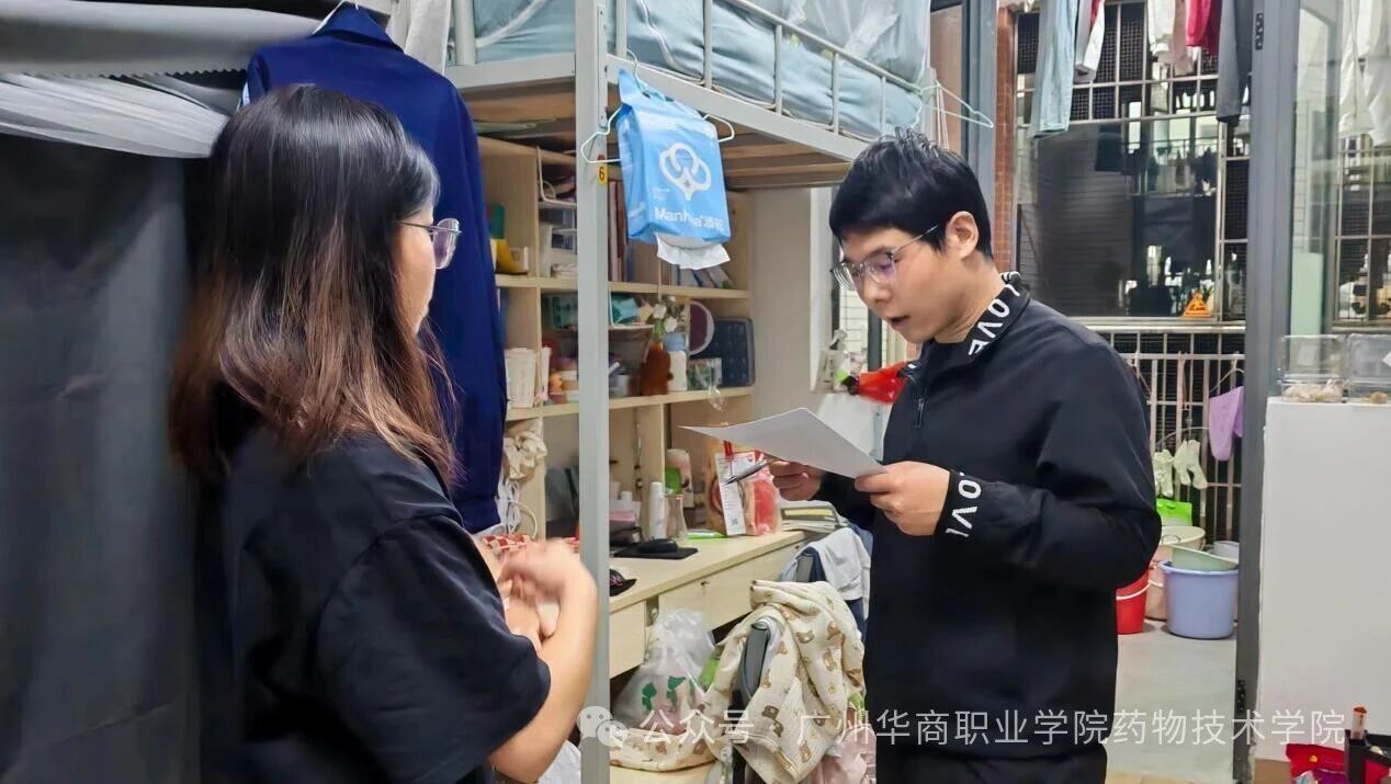 为加强学生宿舍安全管理,消除安全隐患,营造安全、文明、和谐的住宿环境,2025年12月9日,药物技术学院组织开展了学生宿舍安全专项检查活动。学院全体辅导员深入学生宿舍,学院团委、学生会成员协同参与,共同对全院学生宿舍进行了全面检查。