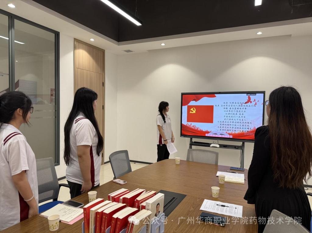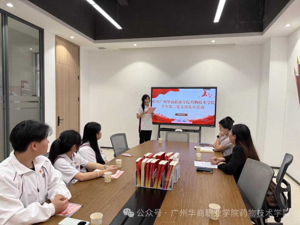 为引导全体党员坚定理想信念、强化使命担当,2026年3月25日,药物技术学院学生第二党支部以“锚定‘十五五’新目标,勇担新时代新使命”为主题,开展3月主题党日活动。本次主题党日活动由学生党员周艳主持,支部书记张明雪、组织委员孔德真、宣传委员林健强及全体学生党员参会。
