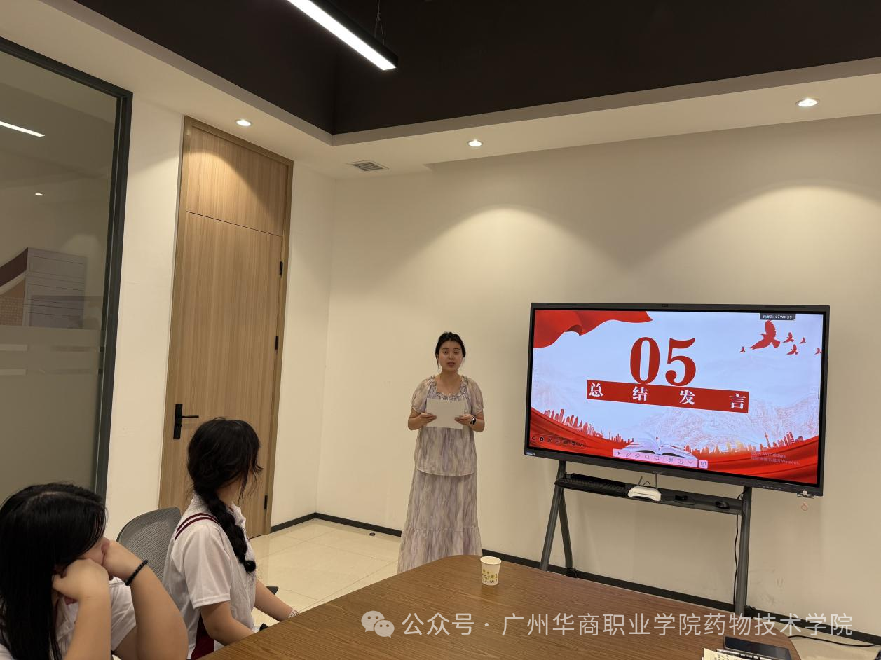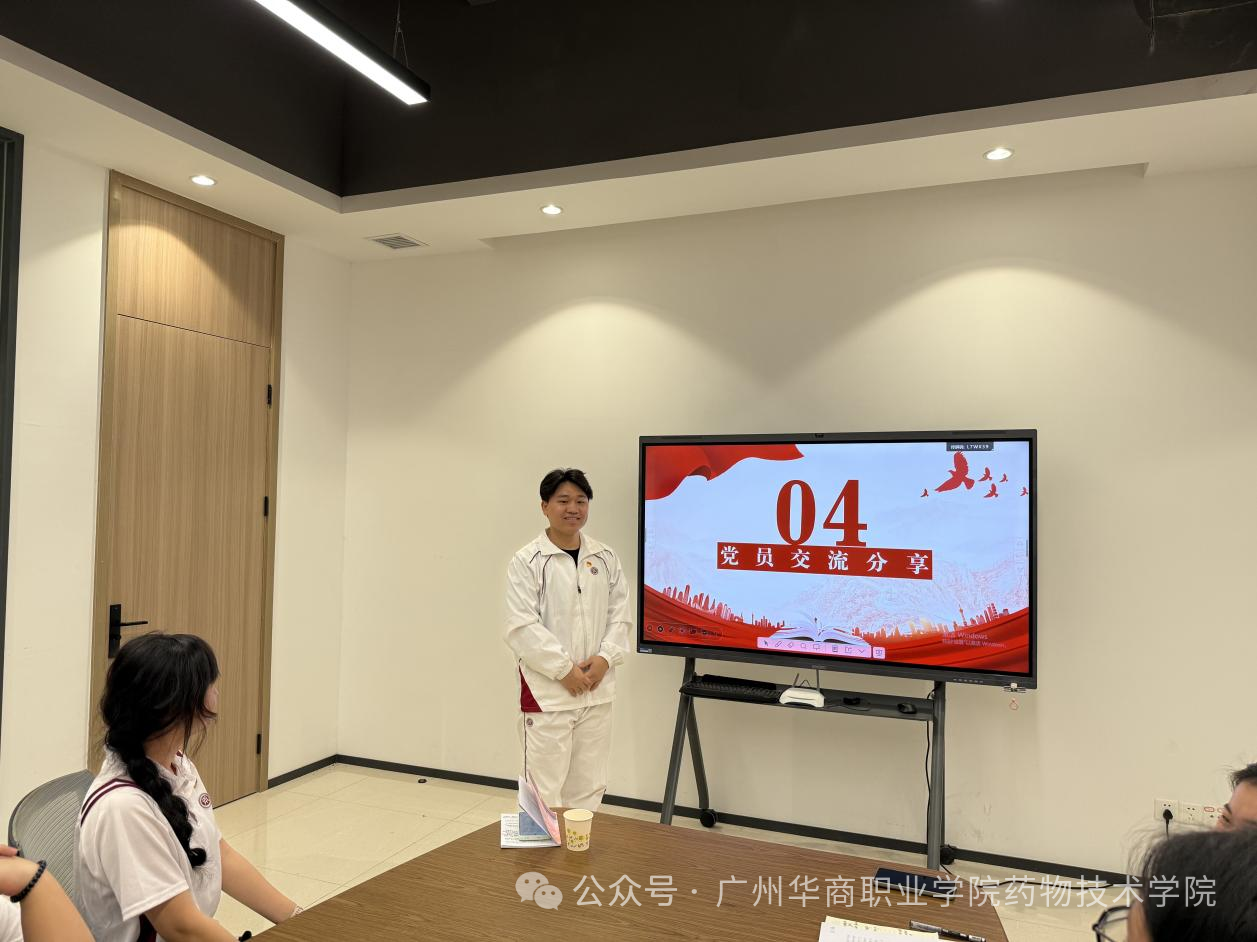学生党员代表曾裕铨结合专业学习与社会实践经历分享感悟,他表示,青年强则国家强,作为药学专业的学生党员,将以“十五五”发展新目标为航向,锚定医药专业发展方向,刻苦钻研专业知识、积极投身科研创新,把所学所长与人民群众的健康需求紧密结合,以实际行动践行新时代青年党员的责任与担当,在守护人民健康的赛道上奋勇争先。
